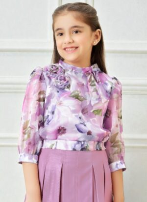 Girls Lavender Floral Top and Purple Pleated Skirt Set