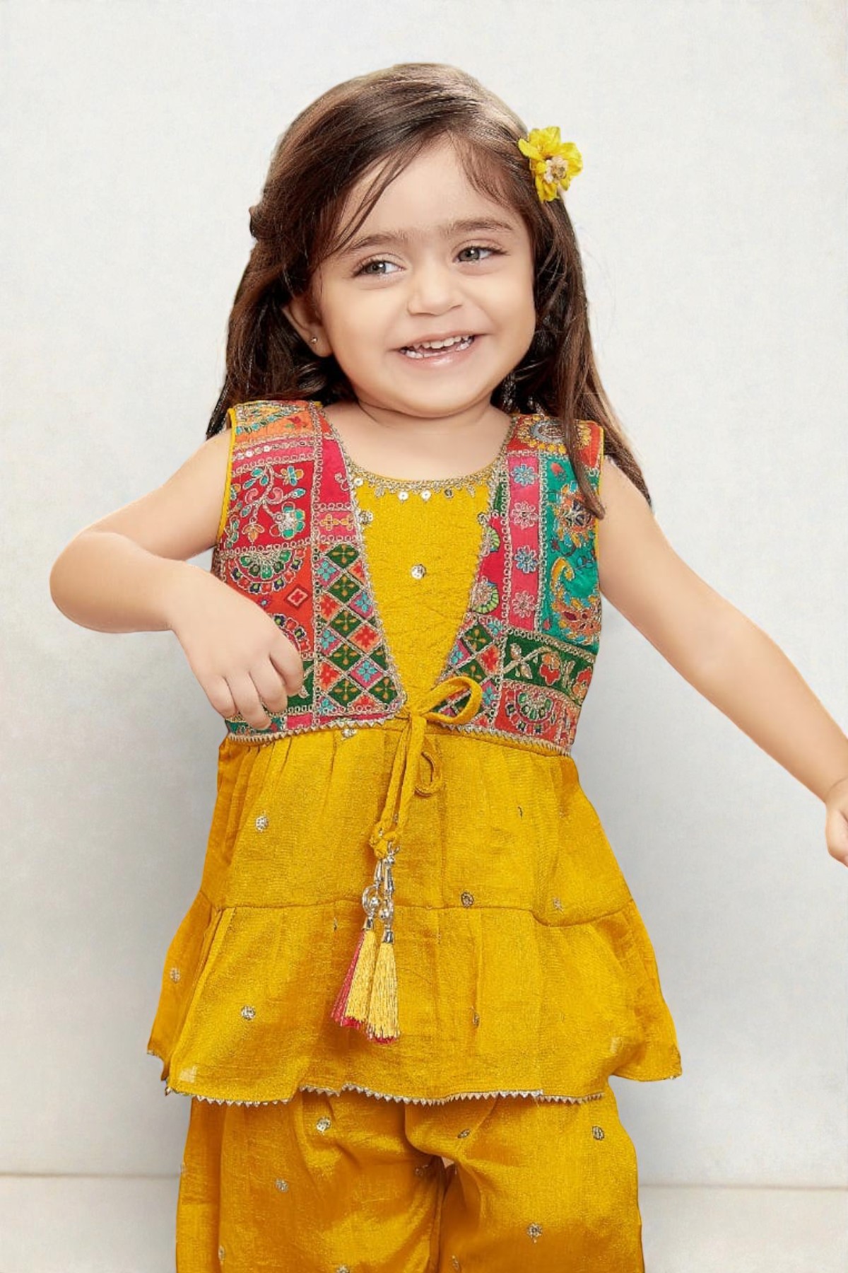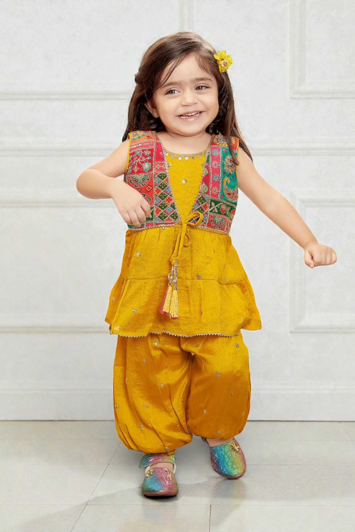 Color: Mustard Yellow with Multicolored Koti